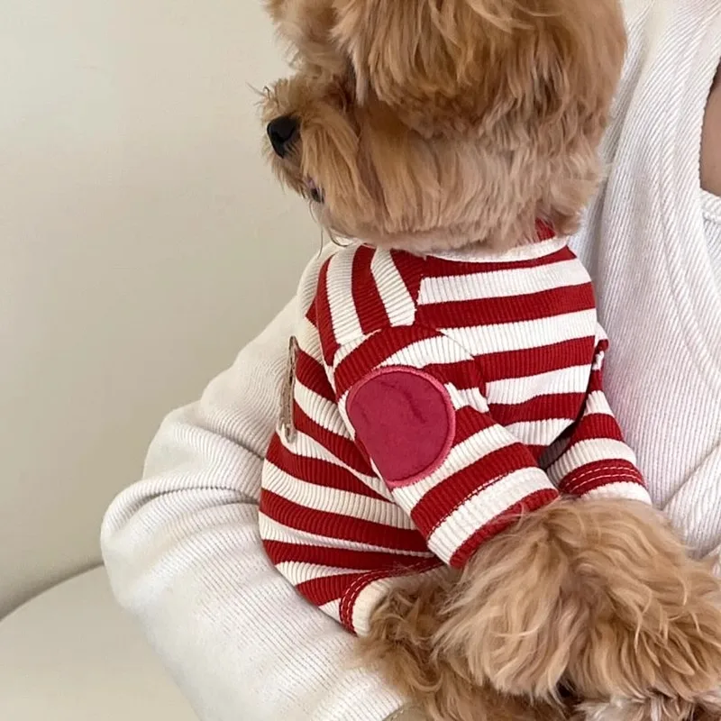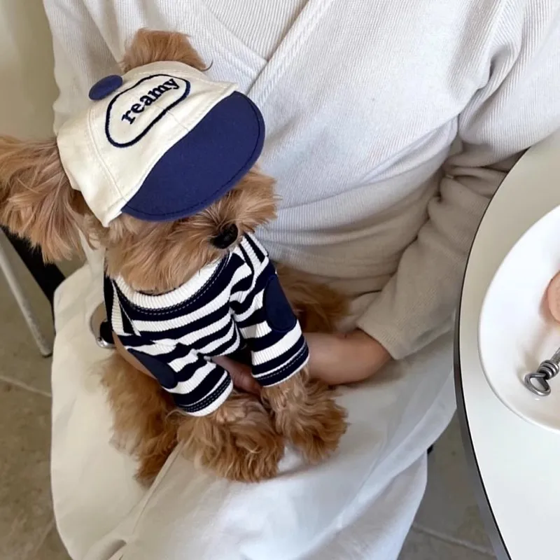 Cute striped puppy shirt made of cotton and polyester. Lightweight summer vest with hoodie for dogs and cats. Comfortable, breathable, and perfect for casual wear.